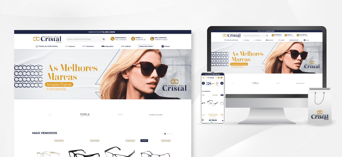 Desenvolvimento de Loja Virtual Ótica e Joalheria Cristal, na plataforma Loja Integrada, layout responsivo.