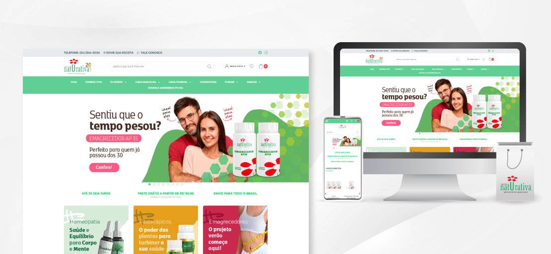 Desenvolvimento de Loja Virtual Naturativa Farmácias, na plataforma Loja Integrada, layout responsivo.